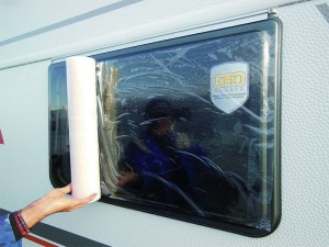 Transparent skyddsfolie på rulle, skyddar dina fönster från repor under t.ex vinterförvaring.
