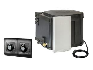 Varmvattenberedare, väggskorsten, skorstenskåpa (KBS 3), manöverenhet med 3 m kabel, magnetventil med extra avsäkring.