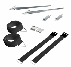 Kitet innehåller 2 st justerbara spännband (300 cm), pinnar samt dragfjädrar. Färg: Svart.
