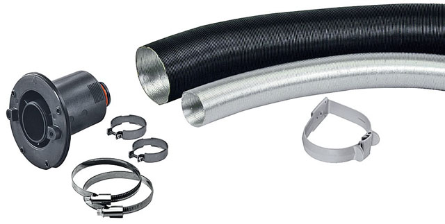 Väggskorstenssatsen består av: Skorstensdel, 1 m avgasrör, 1 m lufttillförselrör och klämma. Dessutom finns skorstensytterdelen WK tillgänglig. 64 L för fordonsväggstjocklekar upp till 40 mm.