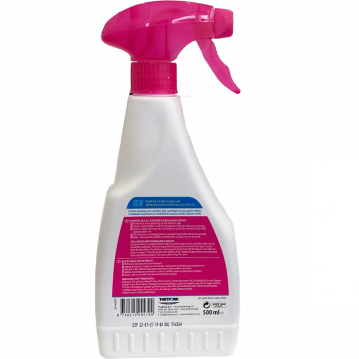 AquaRinse Spray är främst för fordon som tar spolvatten från färskvattentanken. Medlet sprayas inuti skålen innan man använder kassettoaletten och ger en fräsch spolning och håller dålig lukt borta.
