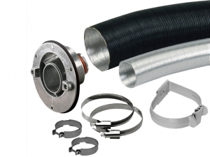 Komplett med 1 m avgas-slang, 1 m insugningsslang och klammer (utan skorstensytterdel)..