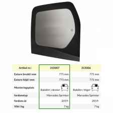 Bakruta dörr till Mercedes Sprinter från modellår 2019-