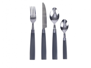 Bestickset som är tillverkad utav rostfritt stål med plasthandtag.