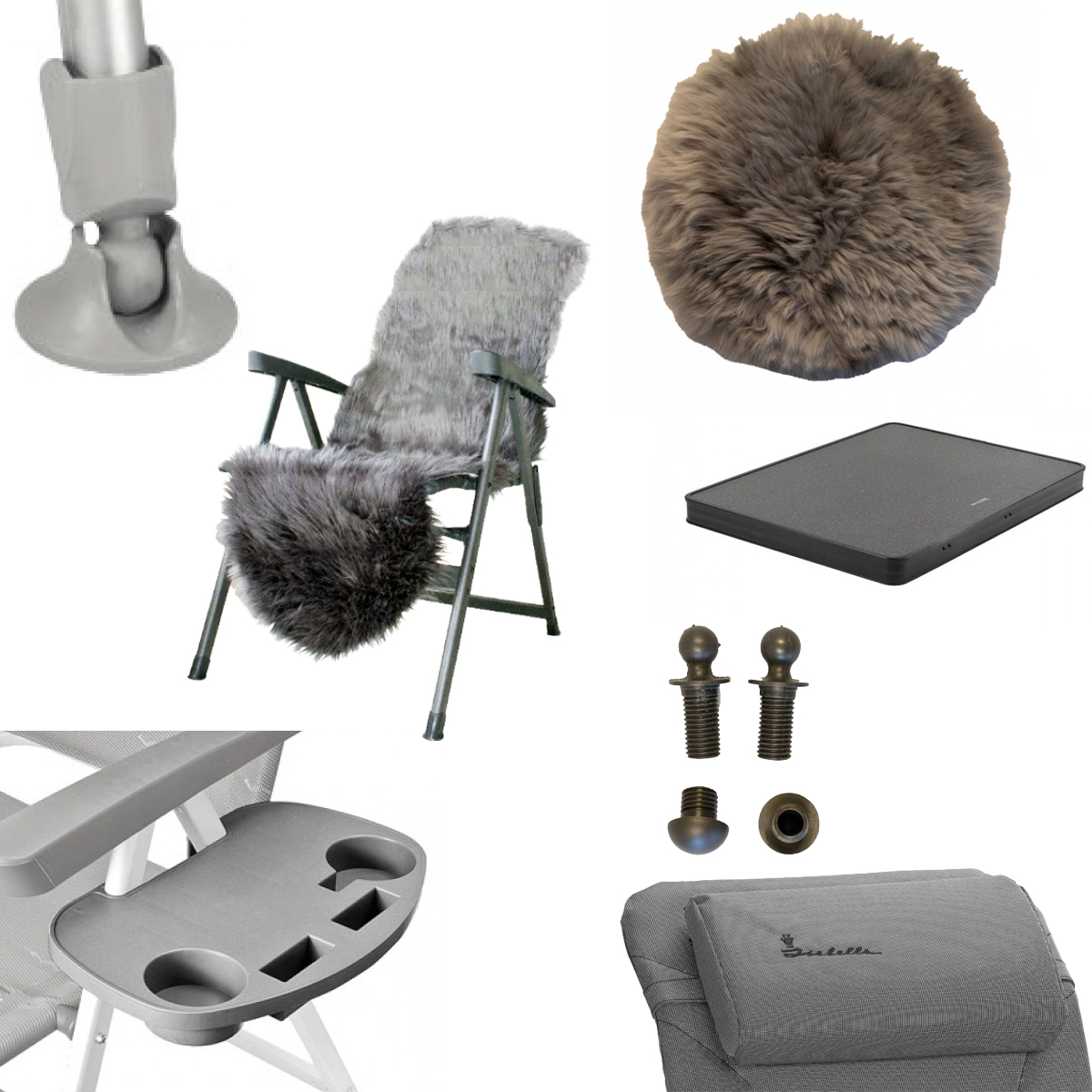 Det går att få tag på extra nackkudde till några campingstolar. Dynorna sitter alltid fast i stommen. Du kan komplettera din stol med en snygg kudde, en värmedyna eller en skön fäll.