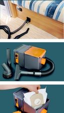 Damsugaren har en kompakt motorenhet som lämpligtvis monteras i en sänglåda eller under en soffa.