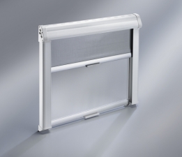 Rastrollo 3000 innehåller både insekts/mörkläggnings-gardin som skyddar mot insyn, båda separat steglöst ställbara. Rastrollo 3000 finns i färgerna vit samt grå.