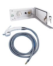 Duschuttag med blandare och dusch. Pumpen startas med strömbrytare.