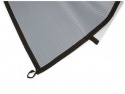 Mattan är tillverkad av ett material som gör att den släpper igenom luft. Det finns öglor i hörnen som gör att man kan använda tältpinnar för att hålla fast mattan (ingår ej).