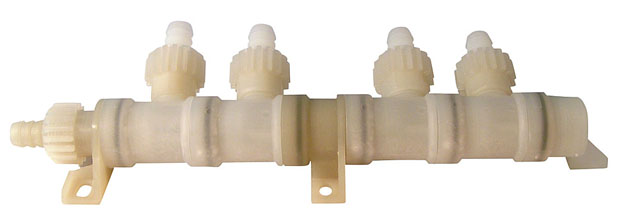 Fördelare med 4 anslutningar komplett med mutter och Monteringsfot frostsäker