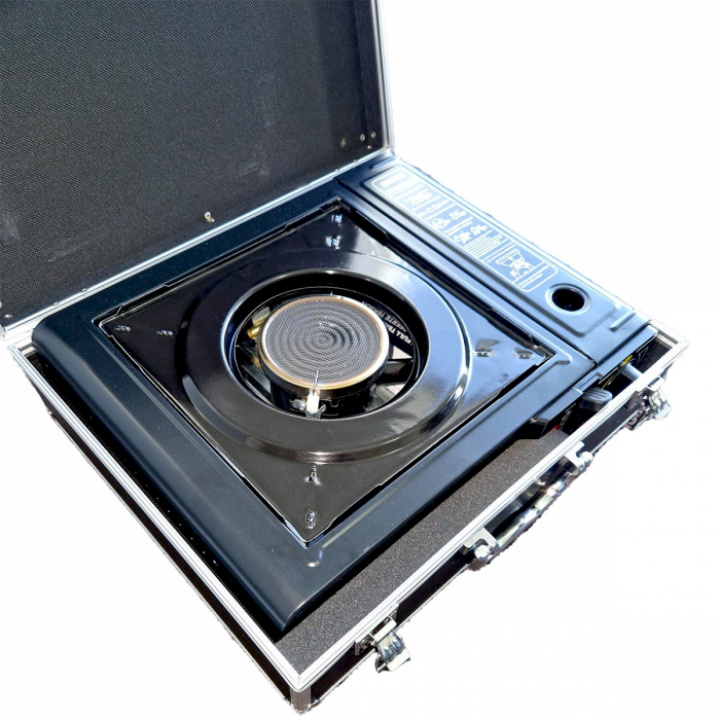 Detta är ett enkelt gasolkök som levereras i en praktisk väska.
