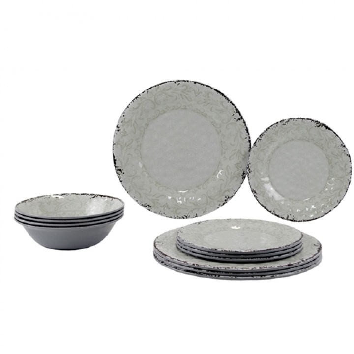 En härlig servis i melamin med intryck av riktigt porslin men med de positiva fördelarna att de är lättare samt mer hållbara! Tål maskindisk.