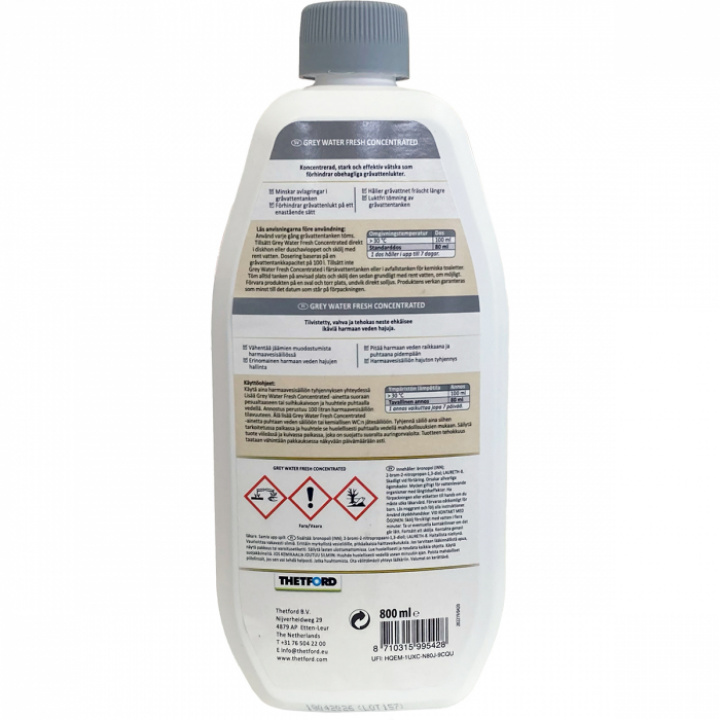Thetford Grey Water Fresh neutraliserar även den illa luktande doften i gråvattentankar och lungor.