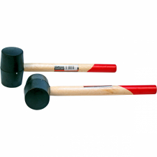 Gummiklubba med träskaft, används till att slå ner tältpinnar med.