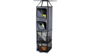 4 plan. Färg: grå. Material: 100% polyester. Mått: 33 x 31 x 110 cm. Vikt: 1,95 kg.