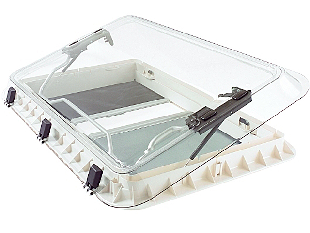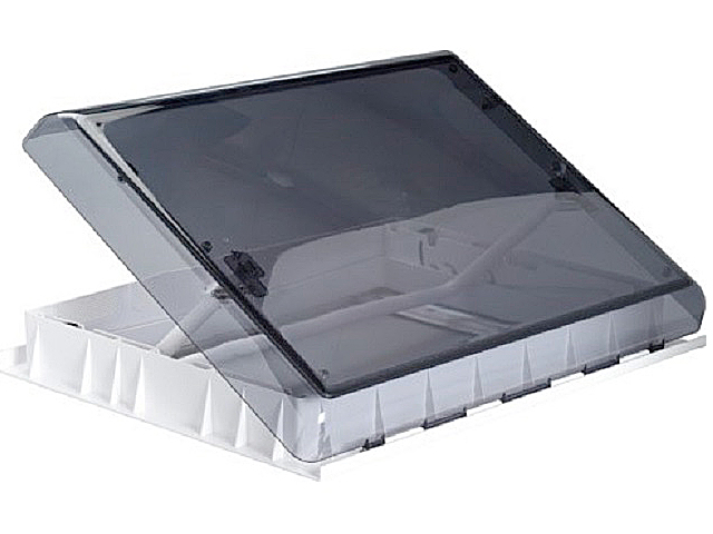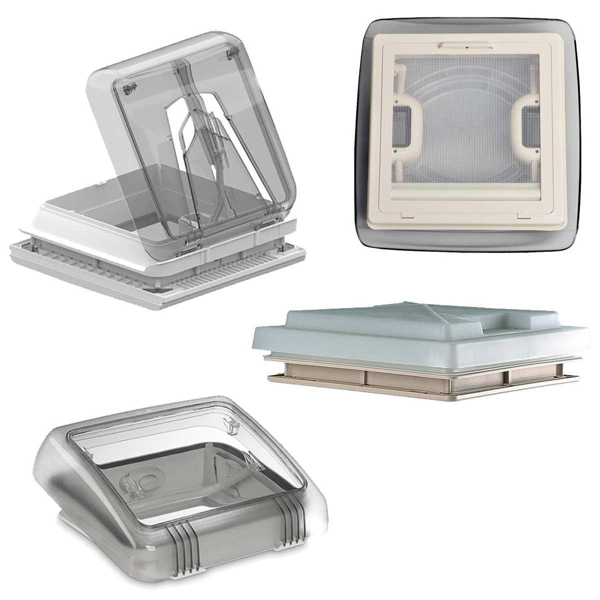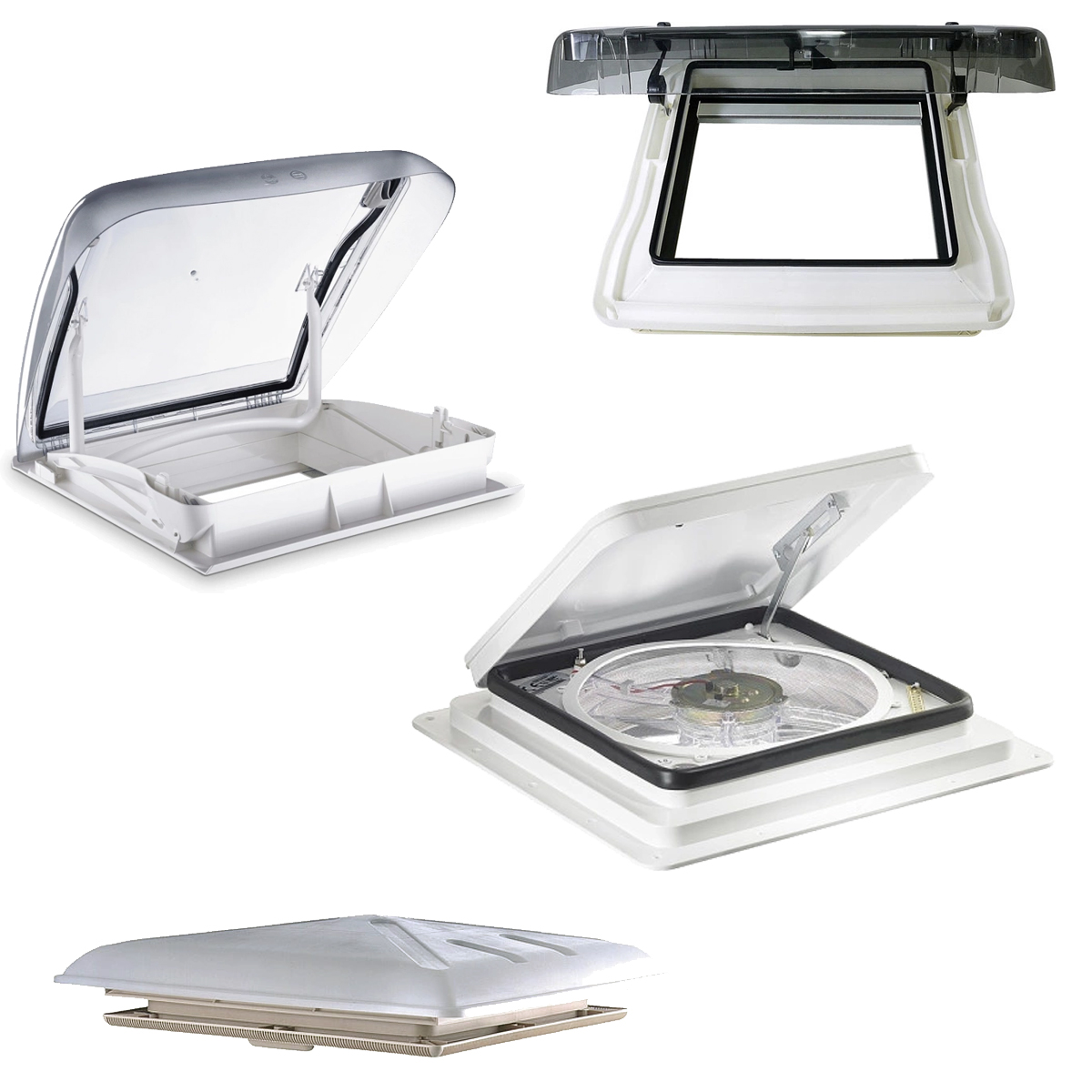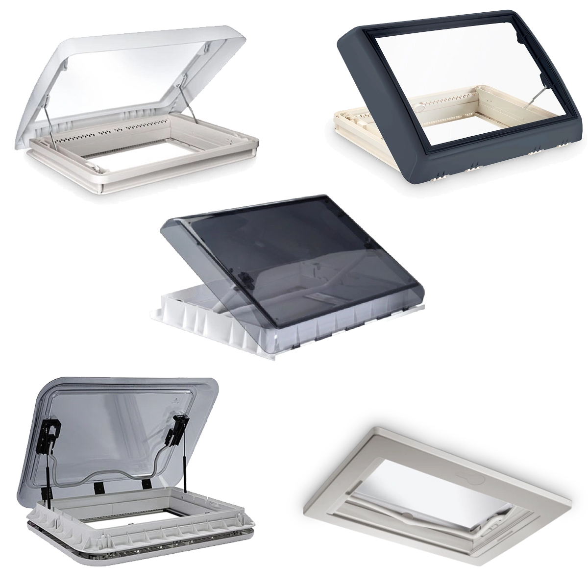 MaxxFan erbjuder en takmonterad fläkt i tre färger. Vi rekommenderar Dometics eller SkyMaxx luckor för deras kvalitet och bredd i storleksutbud. Många av dessa luckor har integrerat myggnät och mörkläggningsgardiner.