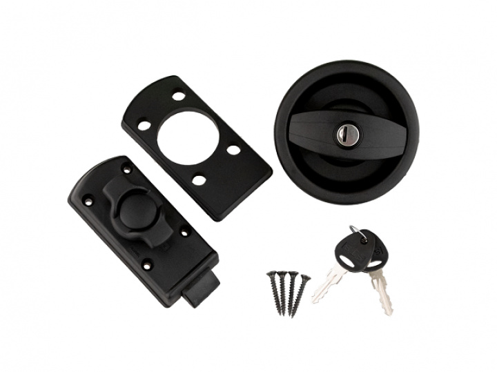 Husvagnslås Universalmodell. Passar både höger- och vänsterhängda dörrar.
