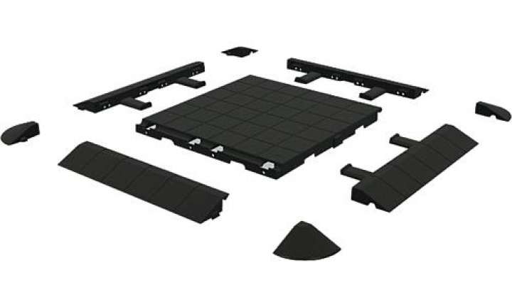 Varje bit har måtten 50x50x3,5 cm och med sin låga vikt är golvdelarna lätta att transportera. Isafloor säljs i skivor 50x50 cm samt kilar/hörn som tillbehör.