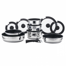 Kastrullset med non-stick-beläggning. Kan användas på gas-, el-, halogen-, keramisk eller induktionshäll. Med avtagbart handtag. Vikt: 2,3 kg.