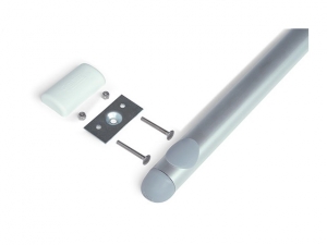 Av massivt, eloxerat aluminium. Levereras komplett med genomgående skruvar, inre fästplåtar och ändstycken.