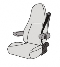På varje sida finns kardborreband för öppning till bältet, dvs det är samma klädsel för både passagerar-, och förarsidan.