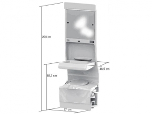 Thetford toalett C402 eller C403 kan integreras, då bredden på väggen är optimal till dessa toaletter.