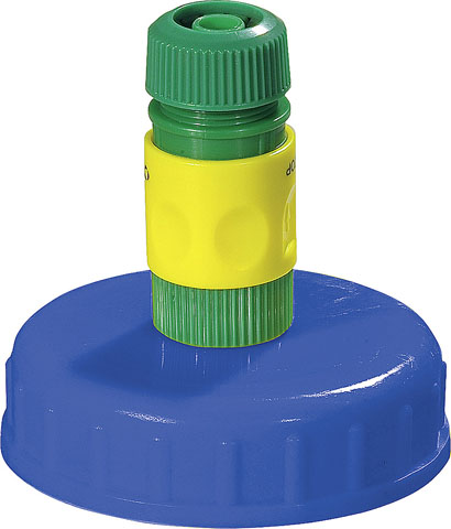 DIN 96-förslutning med snabbförslutningskoppling för bredhalsade behållare eller vattentaxi. Använd en snabbkoppling med ½tum-slang och fäst på förslutningen.