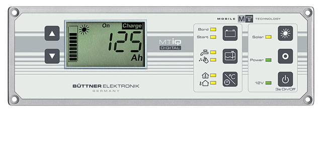 Batteridator MT4000IQ integrerad + nivåvisning för färskvatten/avlopp. Huvudbrytare - funktion, på/av-brytare (pump, ICC m.fl.) Solpanelinfo för alla MT-regulatorer (från 2014).