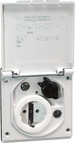 för 230 V/12 V/TV/TV Sat, mått 100 x 100 mm (B x H)