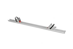 Kraftig skena med skjutbara kilar och remmar för att fästa cyklarnas hjul i skenan.
