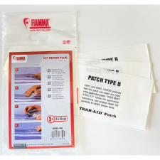 Självhäftande och transparant reparationsmaterial för markisväv. 3 ark per paket. Mått 8x15cm.