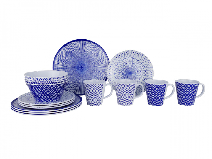 16 delars melaminservis Gimex som består av 4 st tallrikar, 4 st assietter och 4 st djupa frukost/soppskålar och 4 st kaffe/tekoppar. Melamin är lättare och hållbarare än porslin som tål maskindisk. - Dokument