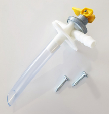 Ventilen öppnar vid 3,5 bar. Vid av- tappning av färskvattnet från varmvattenberedaren fälls den gula spaken uppåt. Monteras på pannans returledning. Ø 10 mm slanganslutning.