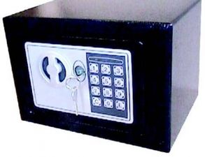 Två reservnycklar följer med som kan användas om t.ex. batterierna (tillbehör 4s AA) tar slut. Vikt 4,6 kg.