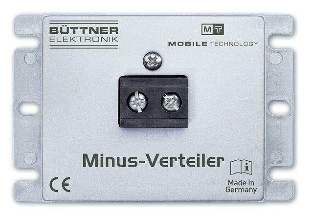 Kompakt 12 facks-fördelare för batteriets minussida. Ingång över samlarklämma (max. 50 A); fördelning över 12 enskilda utgångar (max. 20 A) Driftspänning: 12 V/24 V.