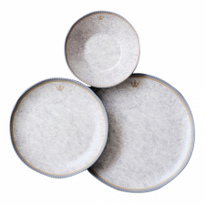 Exklusiv melaminservis som ger en känsla av porslin. Servisen har anti-slip på undersidan som gör att de inte halkar runt på bordet.