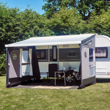 Passar till husbilar och husvagnar med boxmarkiser som har ett djup på 250 cm, samt en monteringshöjd på 240-264 cm (mät från underkant markisbox och ner till mark).