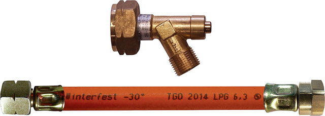 Slangbrottsventil för högtrycksslang och direktanslutning på gasolflaska 750 mm