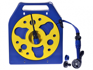 Med två snabbkopplingar och ett 1 duschmunstycke 3/4. Slanglängd 15 meter. Mått hållare 320x375x60mm - Dokument