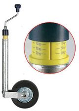 Winterhoff stödhjul med inbyggd kultrycksindikator. När stödhjulet belastas kan man läsa av antal kg på en skala 25–125 kg visar ungefärliga trycket på kulan.