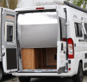 Förvaringsutrymmet under bädden och skåpet med gasflaskan kommer du lätt åt genom att öppna två blixtlås.