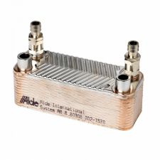 Alde värmeväxlare som i kombination med ett vattenburet värmesystem (ex. en motor eller en dieselvärmare för vattenburen värme) kan nyttjas för uppvärmning av ex bodelens värmesystem, eller Aldes golvmatta (nr 7021971).