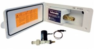 Vattenintag Colorado med tryckreducering och avstängningsventil. Vattenflödet regleras av den medföljande magnetventilen via fordonets vattenkranar som måste ha inbyggda strömbrytare för att kunna reglera pumpen.