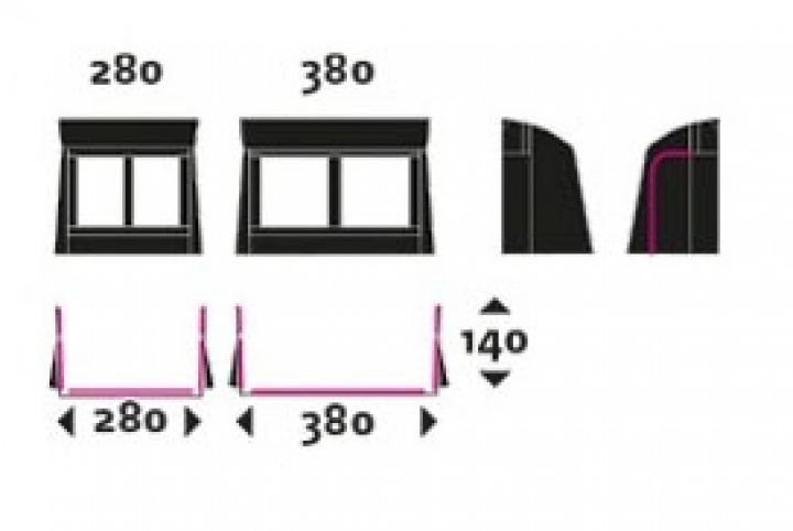 - Markmått 380 x 140 cm eller 280 x 140 cm.