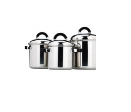 Stapelbart kastrullset i rostfritt stål med handtag av silikon. Exklusiv och smart design som tar minimalt