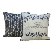 Prydnadskudde tillverkad i 100% bomull med text på ena sidan och mönster på andra sidan,